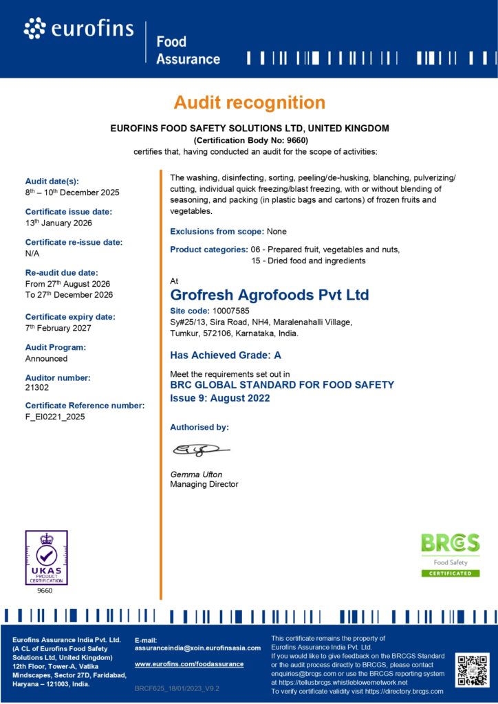 GroFresh Agro Foods is the Leading Frozen & dehydrated fruits & vegetables processors & exporters.